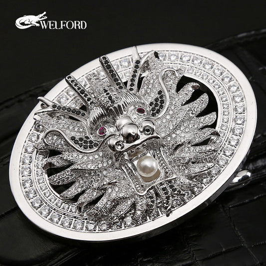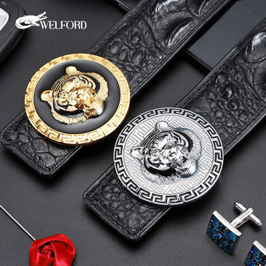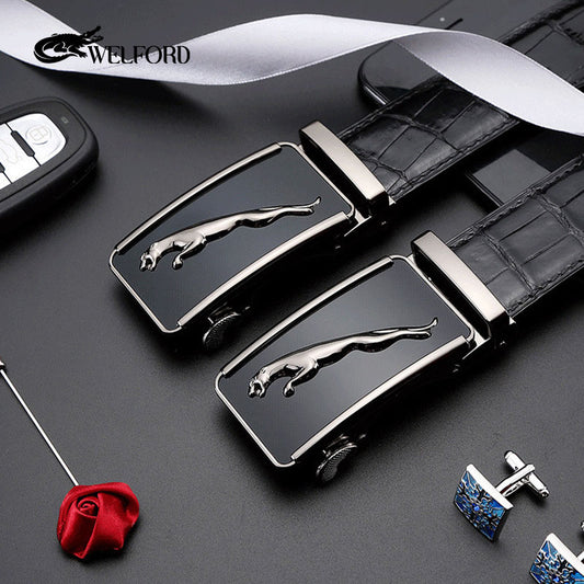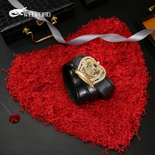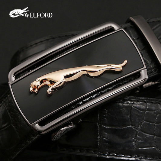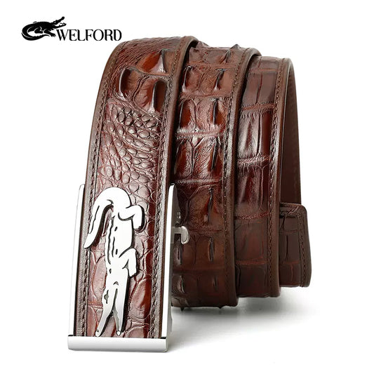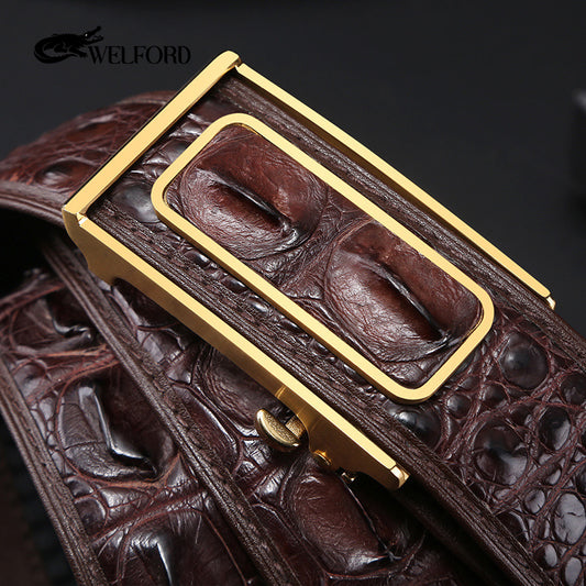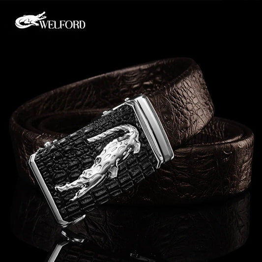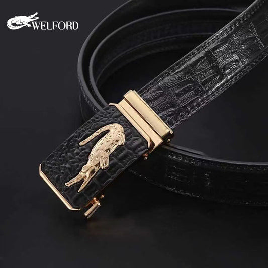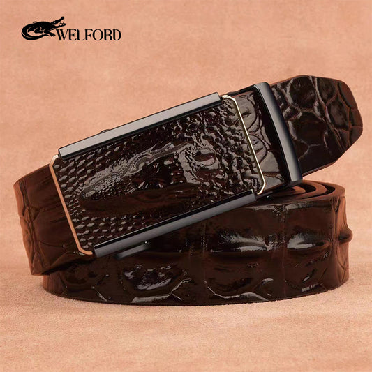 Men's crocodile pattern genuine leather belt with automatic buckle for men