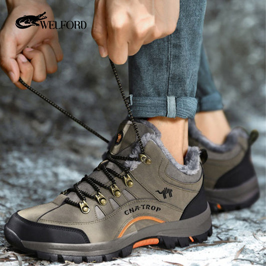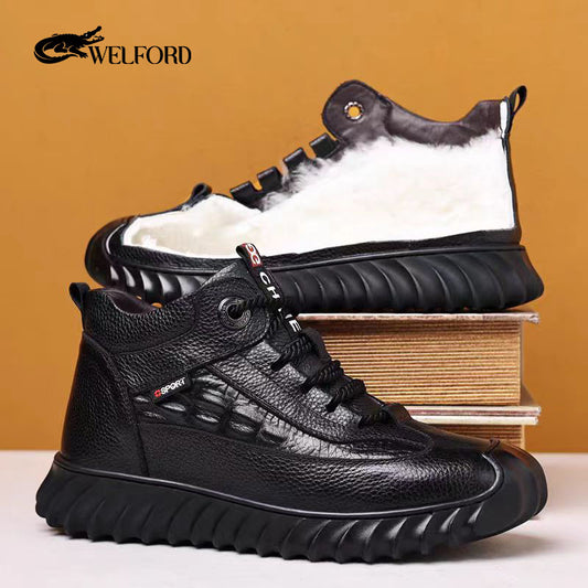 Crocodile pattern cowhide sheep wool warm men's shoes