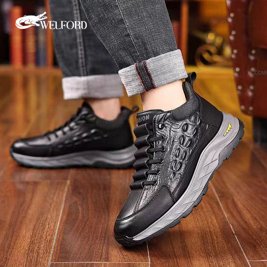Men's Crocodile Pattern Soft Thick Sole Sports Casual Sneakers