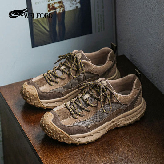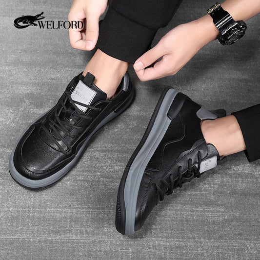 Fashionable men's shoes with velvet stone pattern genuine leather