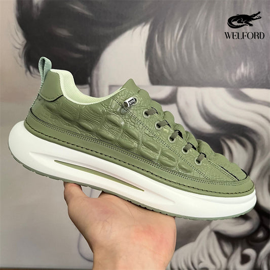 Italian Crocodile Pattern Soft Thick Sole Sports Casual Leather Sneakers