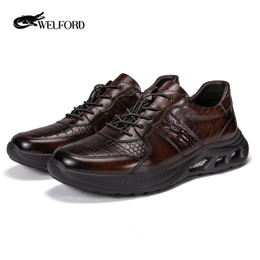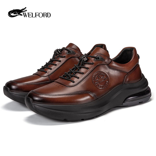 Men's comfortable thick-soled fashionable hand-rubbed calfskin shoes